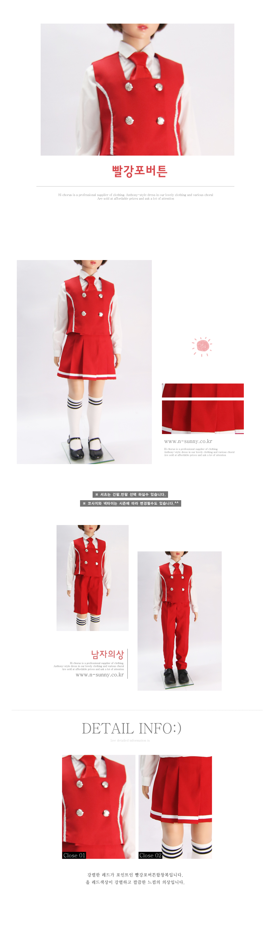 포버튼 조끼가 특징인 레드 의상입니다 ~★
