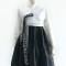 흑백의 깔끔하고 은은한 한글패턴이 고급스러운 한복입니다.