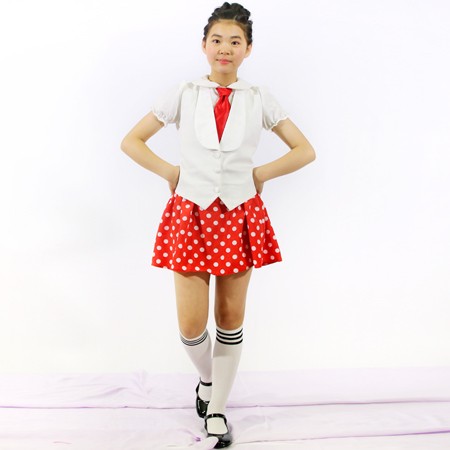 화이트조끼+귀여운 도트무늬의 스커트가 포인트인 합창복입니다.