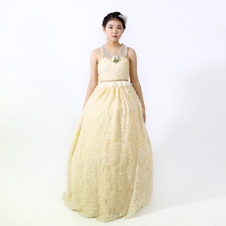 (140-160) 장미 디테일이 화려한 원단이 돋보이는 고급스러운 드레스입니다.