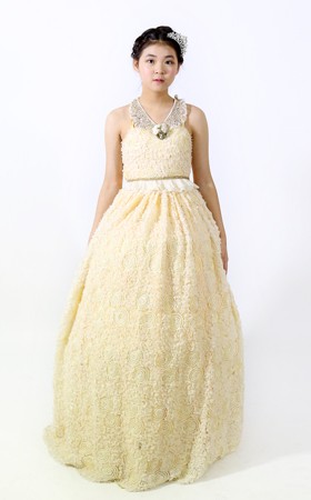 (140-160) 펄감이 아름답게 디자인된 노랑색의 드레스입니다.